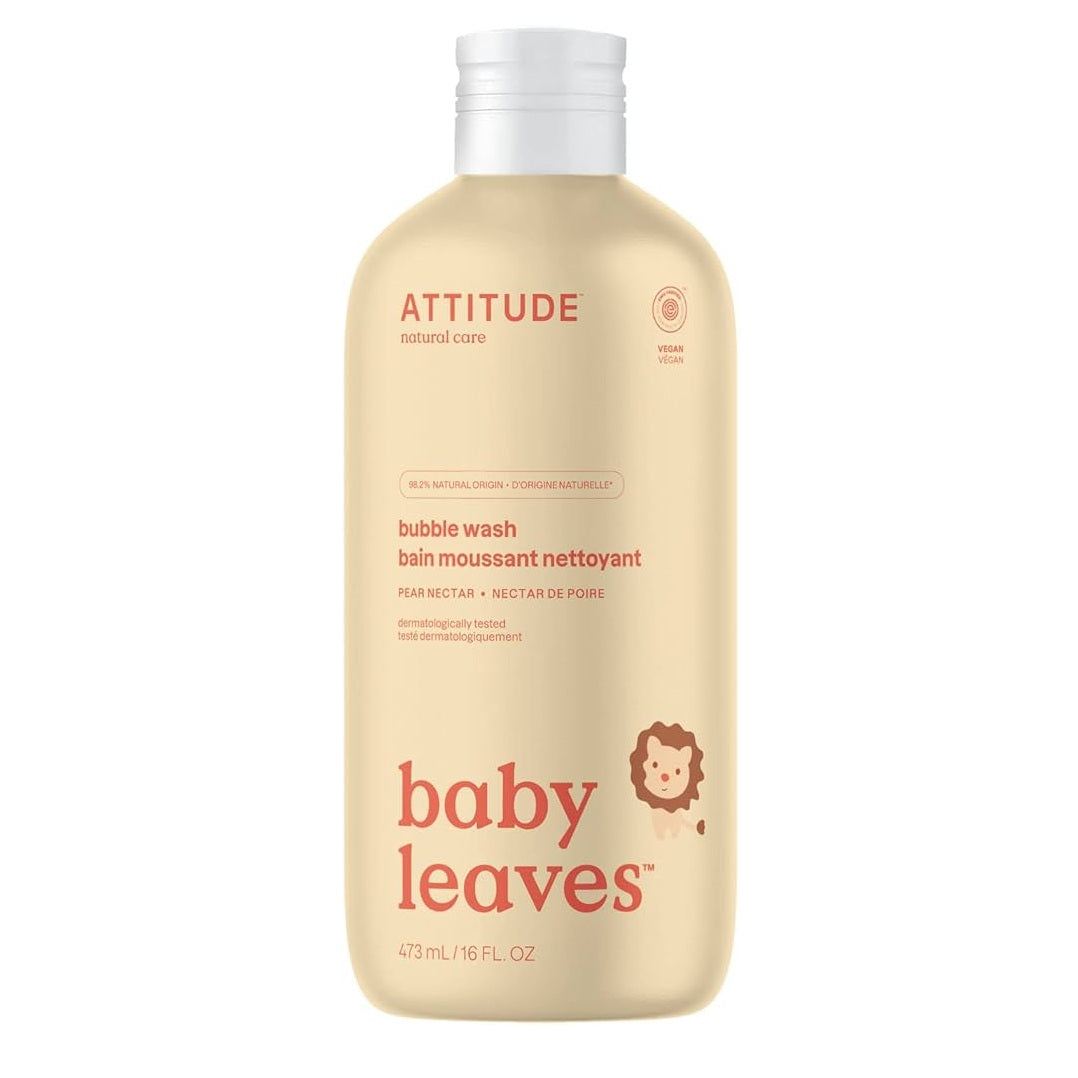 All the more reasons to make your little ones spend extra time lingering in the bath with ATTITUDE’s baby leaves™ foamy Natural Bubble Wash - Pear Nectar. It works as both a baby wash and a bubble bath, which means you can use it to wash baby, but also pour it in the bath to create that cloud of bubble kids like so much.