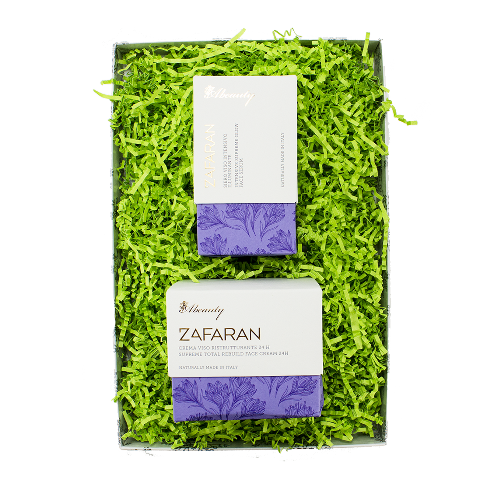 This set contains 100% organic ingredients and is based on saffron, a rare and precious ingredient whose cultivation requires patience and sacrifice. Known for its lightening and anti oxident properties, this set is perfect if you are affected by pesky dark spots or want to reduce hyper pigmentation for a brighter more unified complexion!